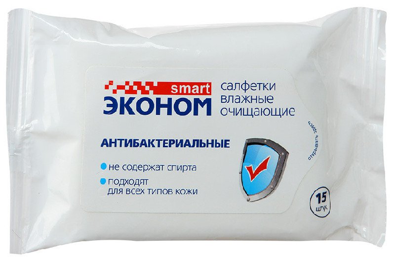 Салфетки влажные Эконом Smart 15шт.антибактериальные годен до 06,2023 Доставка
