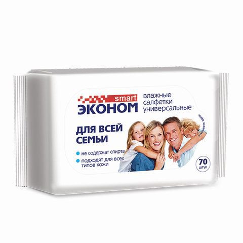 Салфетки влажные Эконом Smart 70 шт. для всей семьи годен до 03.2024 Доставка