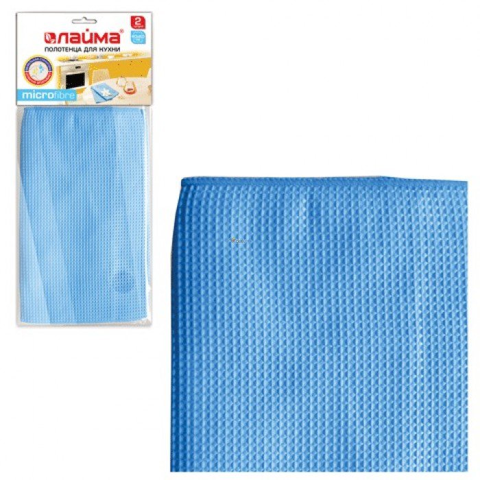 Полотенца вафельные, микрофибра, 40*60см, голубые, ЛАЙМА, НАБОР 2 шт., 601252 Доставка