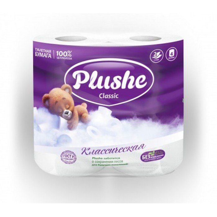 Туалетная бумага 2 сл. "Plushe Classic" белая 1уп/4 шт. Доставка