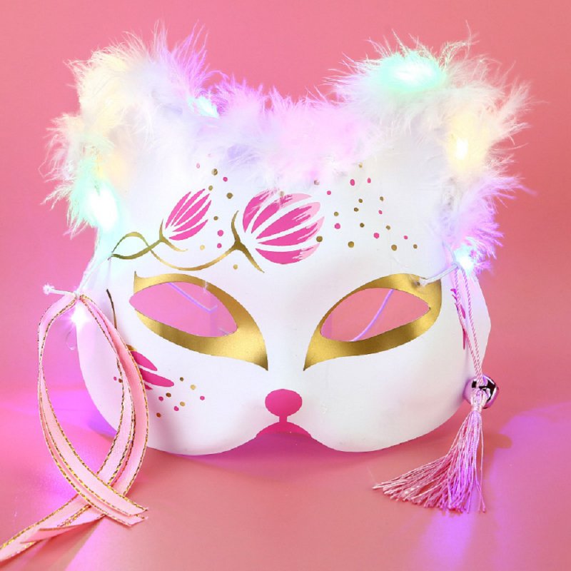 яя Маска пластик Кошка стиль 69 белая с мехом розовый узор светящаяся Доставка
