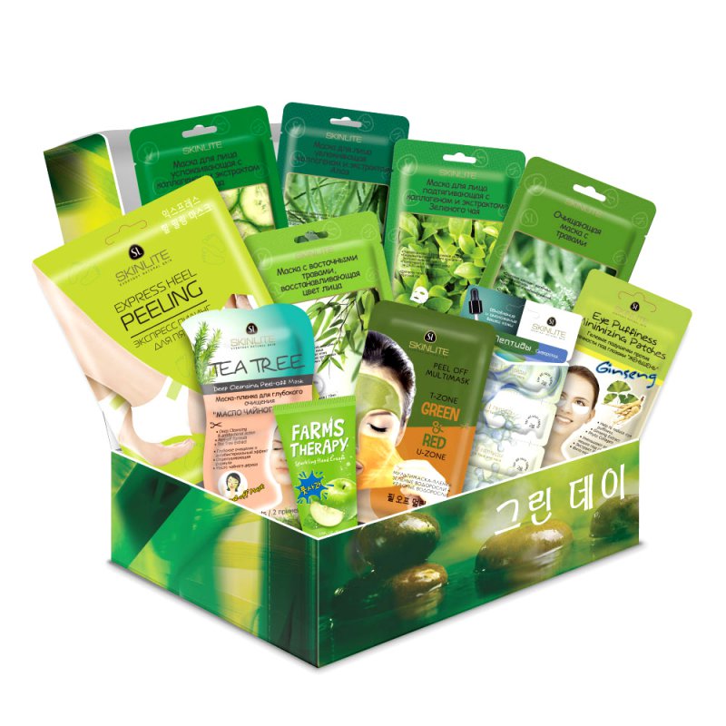 яНабор Фабричный SL 0786 Бьюти Бокс SKINLITE GREEN DAY № 1 (10шт масок) Доставка